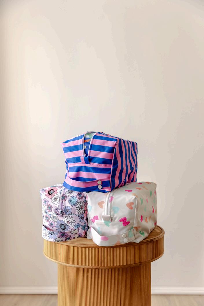 Available in: Newborn, OSFM, Large, OSFM Swim & Large Swim, Training, Large, Medium & Mini Wet Bag, Change Mat, Nappy Pod, Sleeved Bib, Classic Bib, Day Bag.