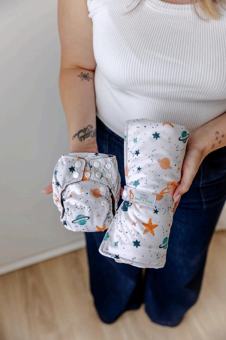 Soft, dreamy, and sprinkled with just the right amount of sparkle. Stardust is made for stargazers, snugglers, and sleepytime magic. A peaceful print that brings a little celestial calm to your nappy stash.
