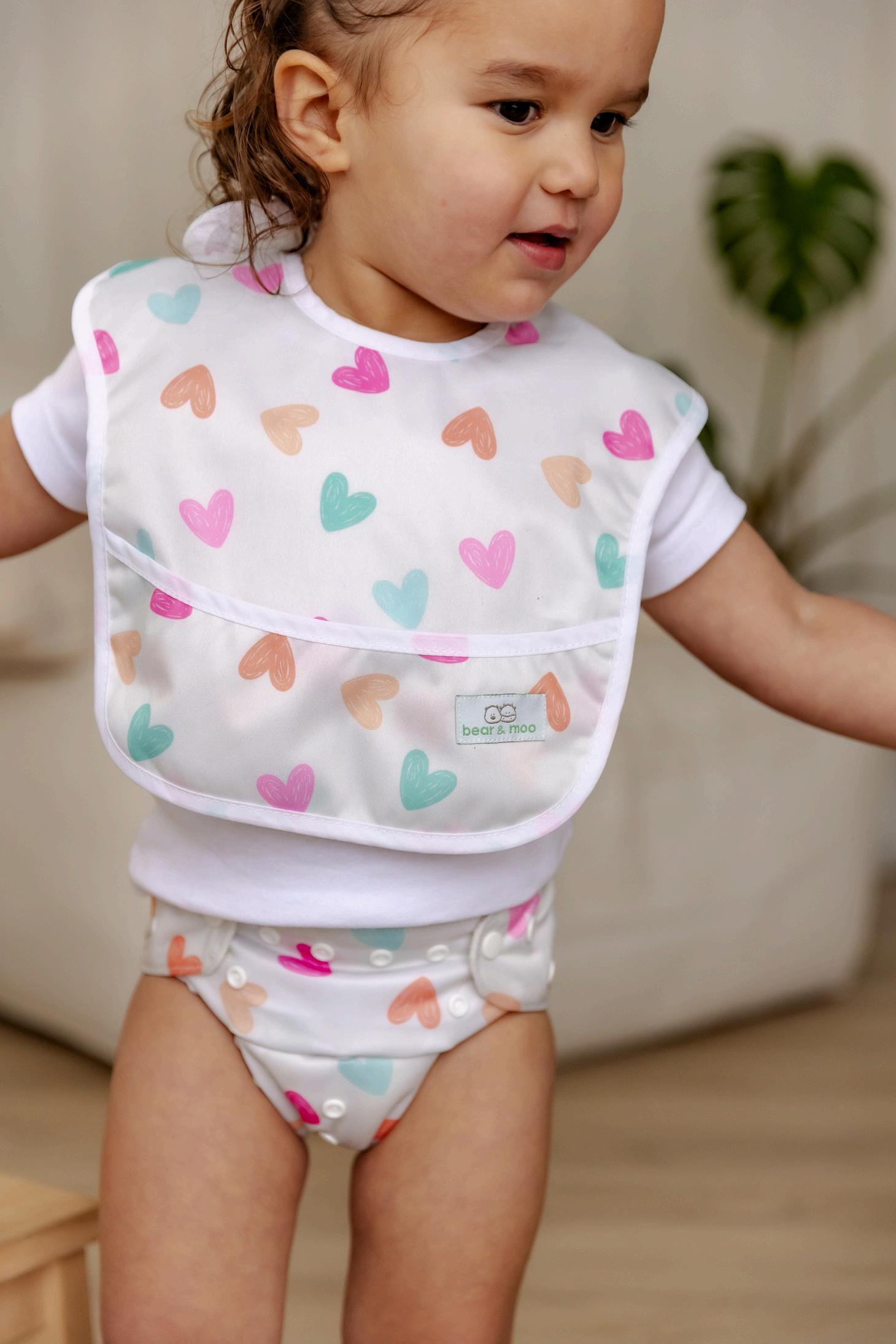 Available in: Newborn, OSFM, Large, OSFM Swim & Large Swim, Training, Large, Medium & Mini Wet Bag, Change Mat, Nappy Pod, Sleeved Bib, Classic Bib