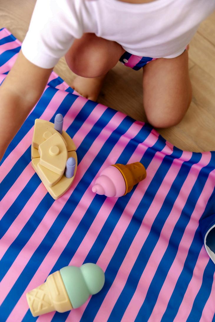 Large Swim Nappy, Medium Wet Bag, Change Mat, and Sleeved Bib.