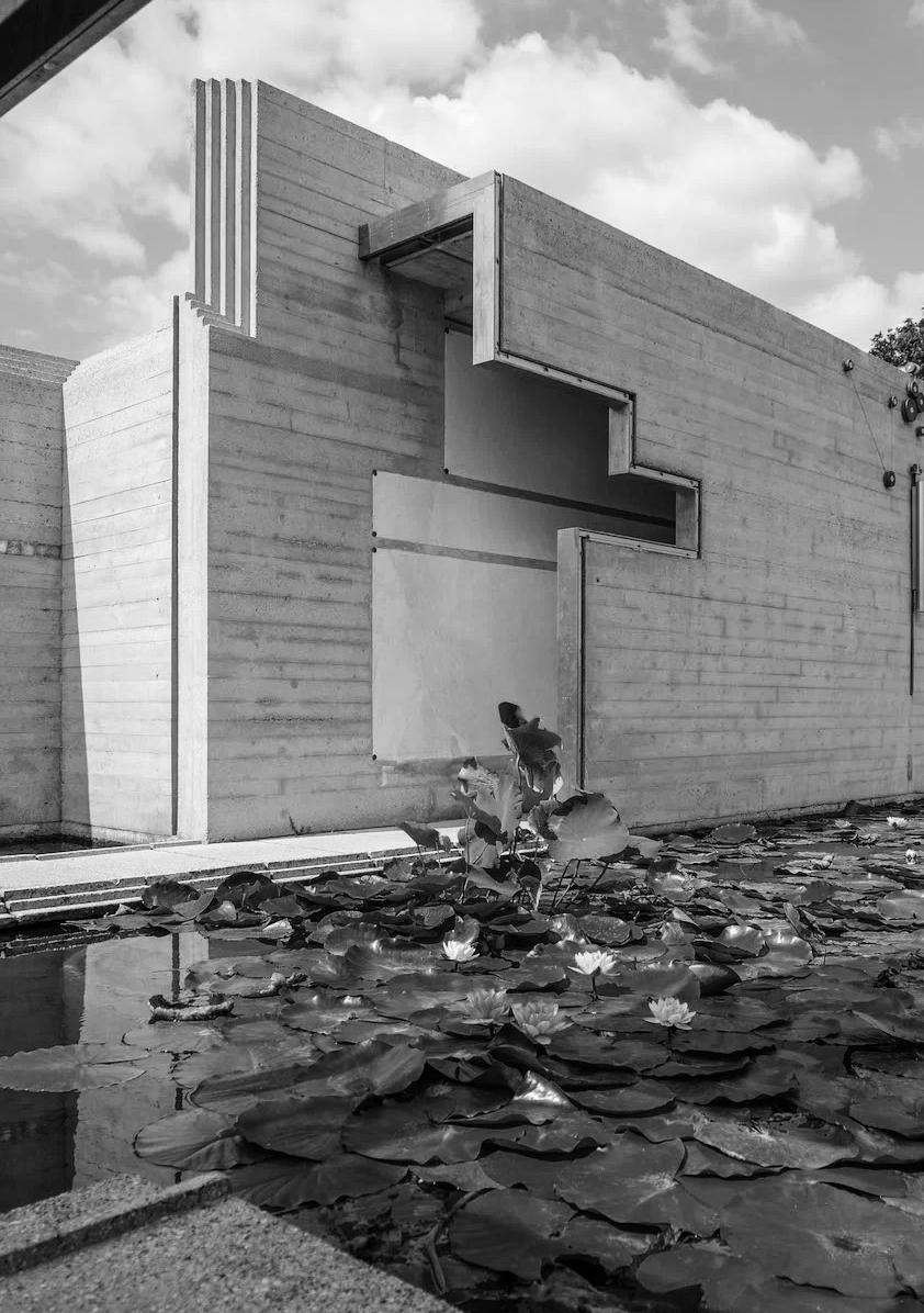 sposizione degli spazi, evoca un senso di sacralità e introspezione. La struttura non è un semplice mausoleo, ma un percorso simbolico che guida il visitatore attraverso passaggi e aperture studiate per creare giochi di luce e prospettive mutevoli. Il celebre arco circolare, simbolo di unione eterna, e il padiglione dell’acqua, con il suo riflesso sempre cangiante, trasmettono un senso di armonia e infinito. Scarpa, profondamente influenzato dall’architettura giapponese e dalle filosofie orientali, ha progettato la Tomba Brion come un’opera viva, capace di trasformarsi con il tempo e con la luce.