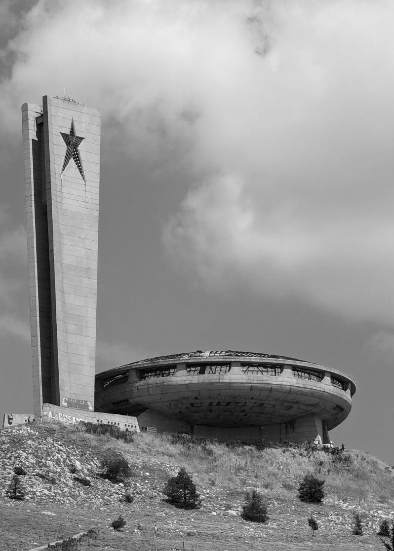 storico, il governo comunista bulgaro, decise di erigere un monumento grandioso per celebrare il trionfo del comunismo. La costruzione fu finanziata dallo Stato e dal Partito Comunista, coinvolgendo migliaia di lavoratori e artisti nel progetto. Dopo sette anni di lavori, il monumento fu inaugurato il 23 agosto 1981 con una cerimonia solenne. Buzludja divenne un simbolo del potere comunista bulgaro. Qui si tenevano importanti celebrazioni, congressi e raduni, con l’obiettivo di rafforzare l’ideologia socialista tra i cittadini. Il monumento fungeva da centro per la memoria collettiva del regime e da luogo di pellegrinaggio per i sostenitori del Partito. Con la caduta del comunismo in Bulgaria nel 1989, il destino di Buzludja cambiò radicalmente. Il Partito Comunista perse il potere e il monumento, un tempo simbolo della sua forza, fu abbandonato. Nel 1991, la proprietà dell’edificio passò allo Stato bulgaro, che tuttavia non intervenne per preservarlo.