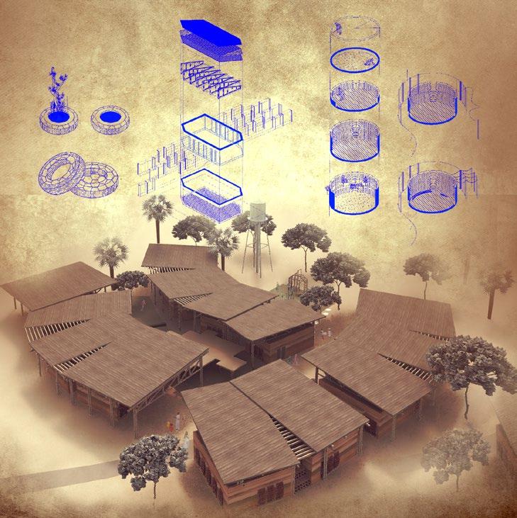 Kaila Looro competiton of 2021 proposed to design an eath made School for the senegalese kids. The design started from memories of school days; The design process strated from extracting four main keywords from personal experiences. The three row-buildings create at least three in-between spaces. Instead of being rigidly put together, the classrooms play a soft dance, back-and-forth, which makes the surrounding outdoor spaces even more differentiated from one another. Round geometries are used outdoors to be in harmony with the playful classrooms and to promote spontaneity.