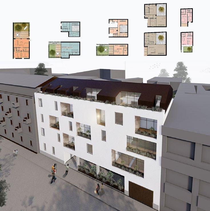 The project illustrated here concerns a demolition and reconstruction operation on a lot located inMilan. The slat on the street front is aza for four floors standing at the height of the building adjacent to the west, and houses only two-room and three-room apartments, illuminated by large arches re-entering. The shoals inside the courtyard house independent duplex accommodation, with entrance from the inner courtyard. Each apartments enjoys ample lighting through the internal patios, as well as a private terrace. The pitched roof in crimped sheet, cut from the dormer windows of the top floor, recalling the shape of the underside of the building. The new building fits perfectly into the industrialized context of the northern area of Milan.