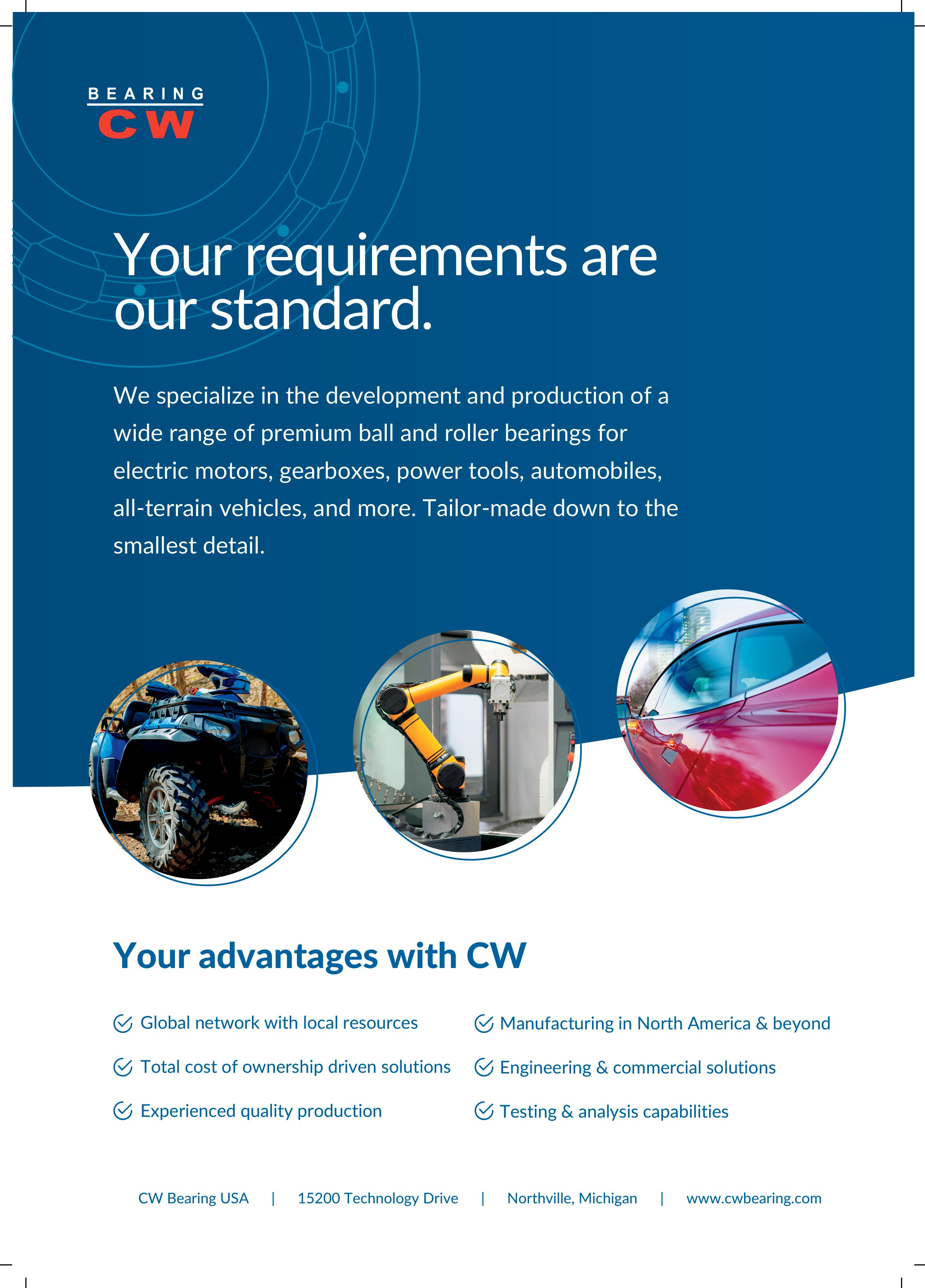 Further in this issue, we invite you to explore what’s rolling in the bearing industry. Learn details about key companies and trends, investments, product developments, and other newsworthy advancements. All this and more can be found in this new edition of BEARING NEWS Magazine.