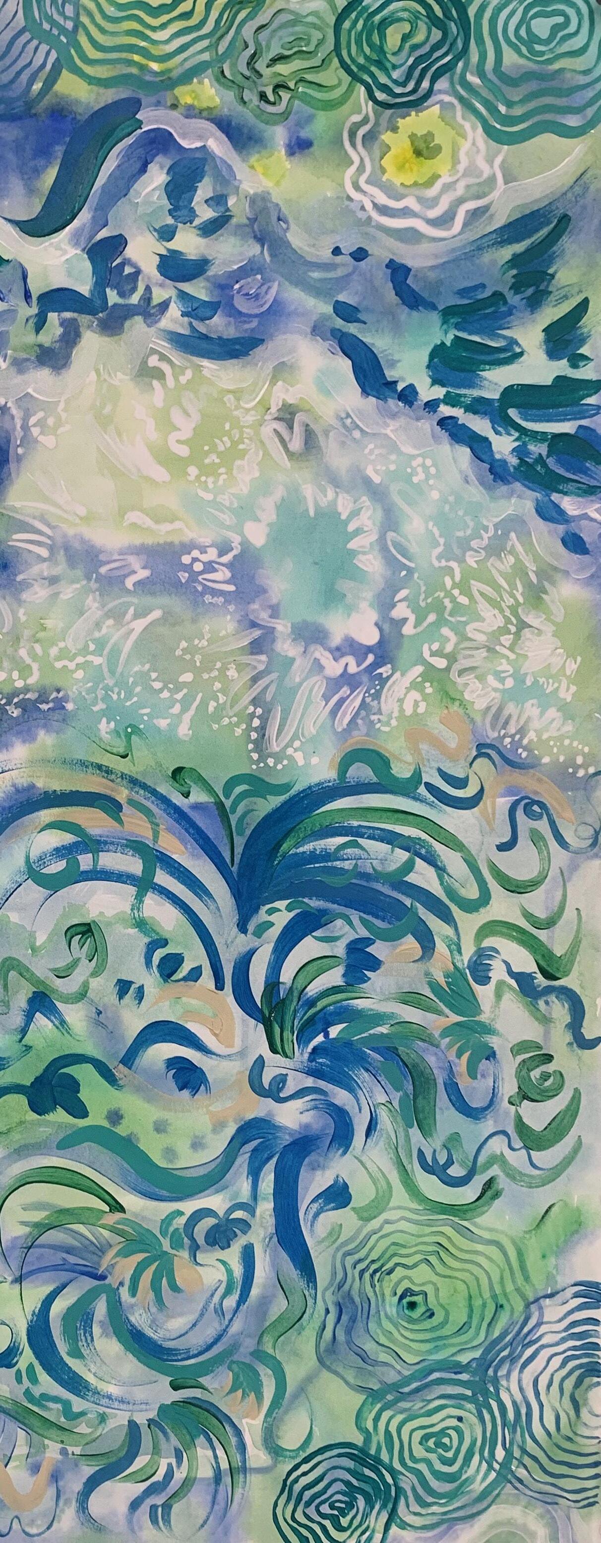 For these hours I am watcher over mute waters, hunter of phosphorescence —green stars in glass. I still my hands, watch. Life uncurls throbbing with the instruments’ noise strumming time. We call them wells, deep waters locket-large, wombing strata, blossomed void.