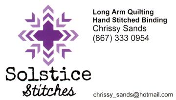 We have added to the list Chris, who works in the shop on Mondays and is going to teach two classes and Dahn Casselman has agreed to do an improv class. Jocyline is busy this term but will return. Lots of us were involved in the Yukon display of quilts at the Edmonton show organized by the Canadian Quilters’ Association. About 80 quilts were gathered up by the Kluane Quilter’s Guild and were transported and hung at the show. I have to say we looked good, even better than good. There was a mixture of art quilts, pieced quilts, wall hangings and bed quilts, many of them original designs and unusual interpretations of commercial patterns. I was very proud of how many were from the classes we held at the shop. Walking round the display it was exciting to listen to the comments of other quilters.