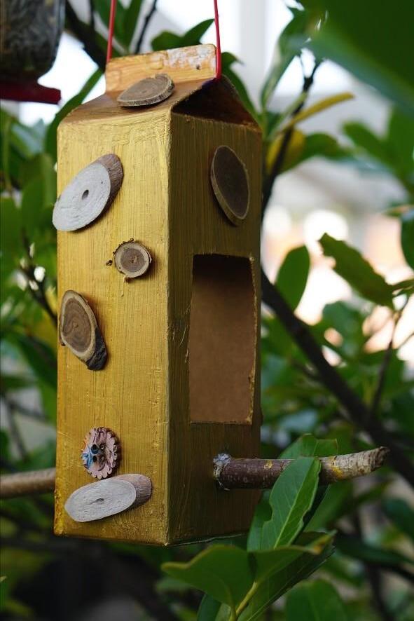 GutvorbereitethabenwirunsfürdenWinter.Da wirTierfreundesind,wurdenKunststoffbehälter upgecycledunddarausVogelfutter-Häuschen hergestellt.SchaugleichaufdieSeiten8und9!
