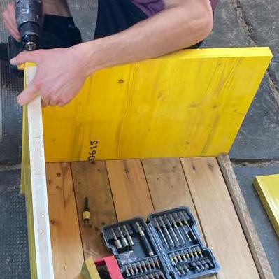 The base is made by simple wooden elements, joined together, that will support the weight of the bench and at the same time let the rain-water drain, avoiding the flooding mechanism.
