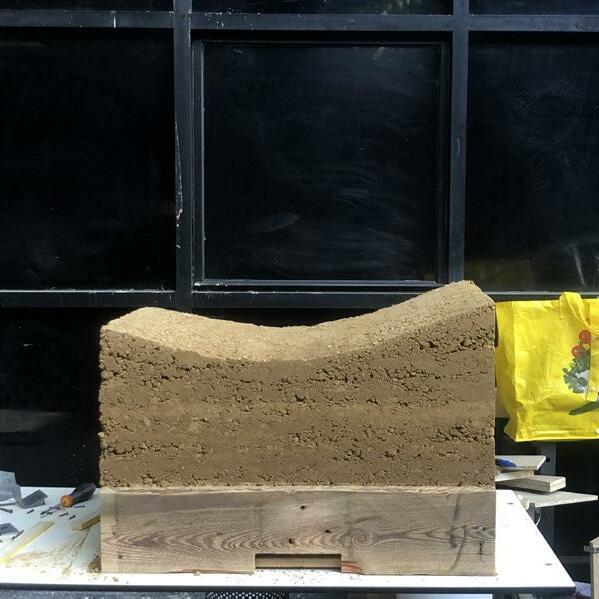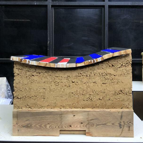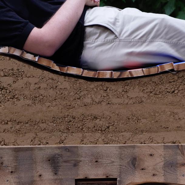 The two main materials that have been used are earth and wood, in order to ensure the sustainability of the design, since at the end of the exhibition period, is going to be possible to dis-assemble the bench and re-use the materials.