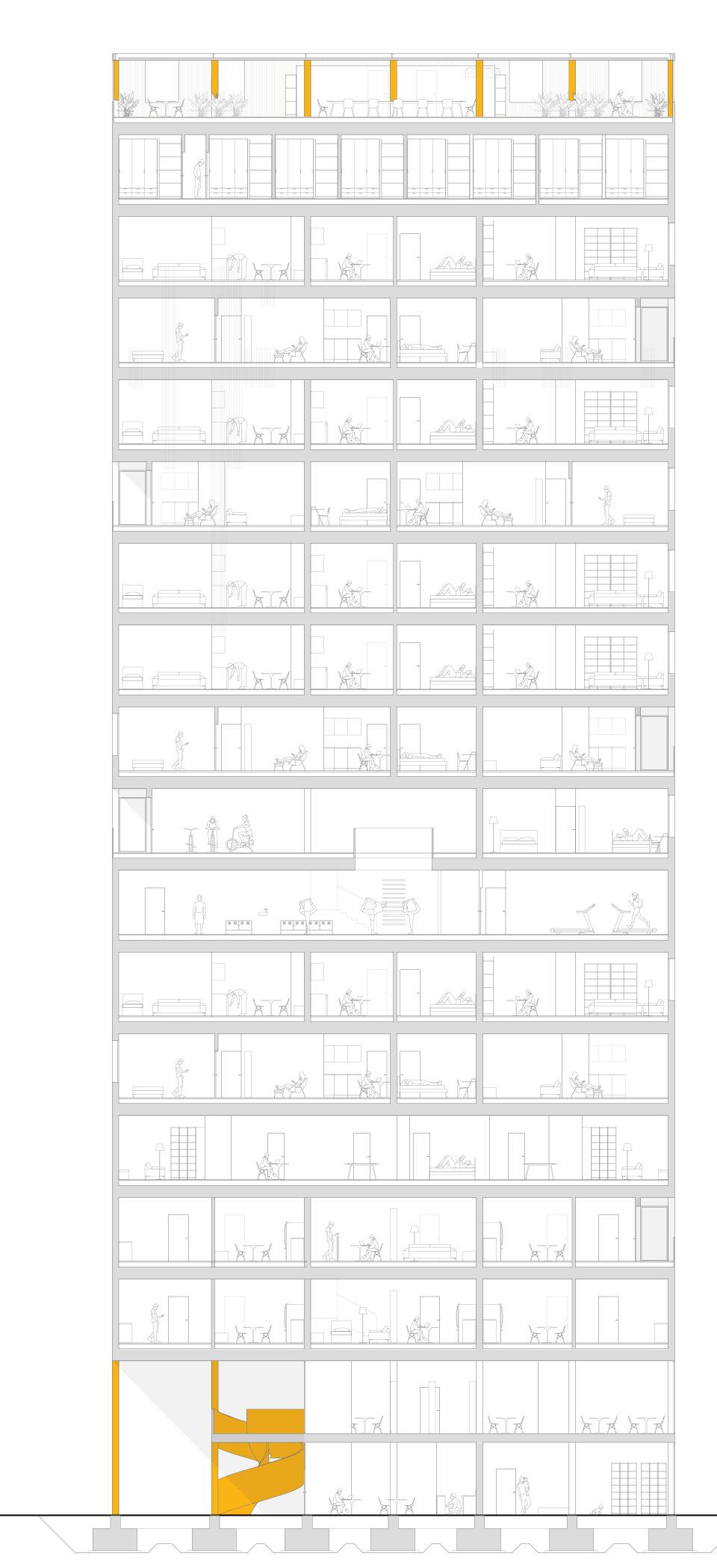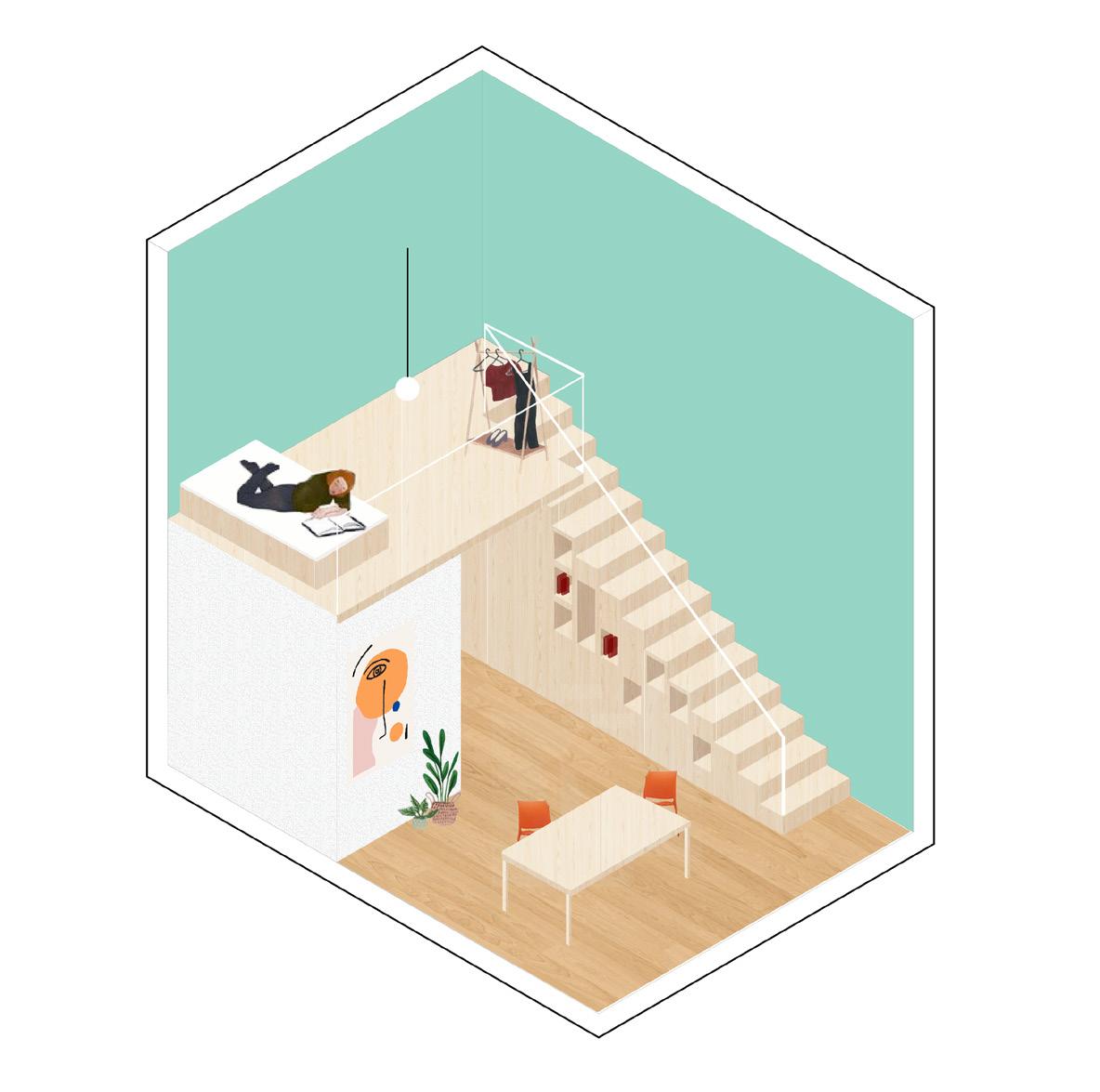 Housing post pandemic, Milan / Atelier Michael Obrist, Milan International Design Studio with Giulia Scalavicci, Letizia Viola https://issuu.com/beatrice.uva97/docs/the_hidden_island 21/22