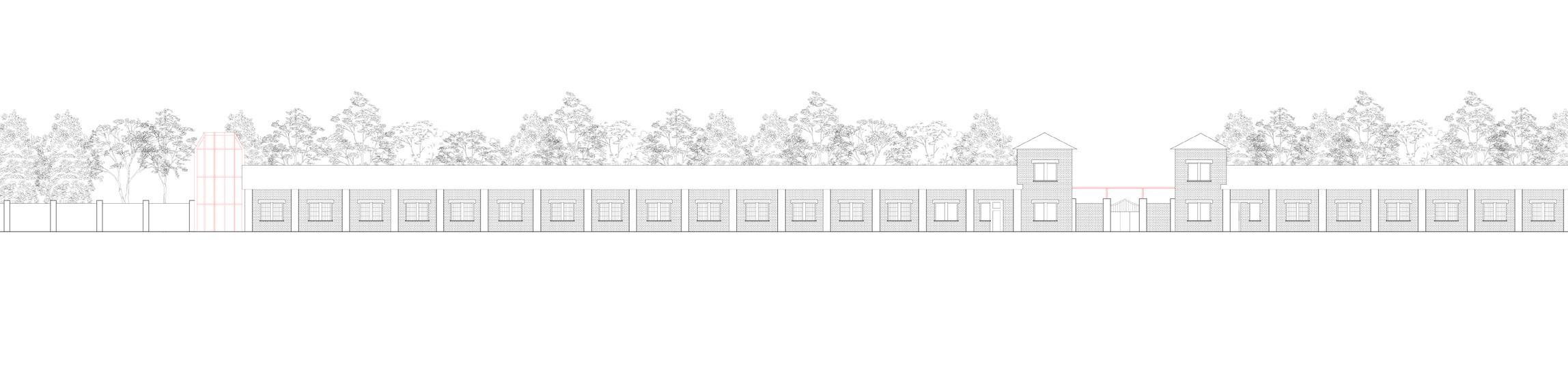 The project is thought as “a village within the village”, in fact the house isn’t conceived as a compact block but as a number of volumes linked though a red thread, like in the traditional African compound.