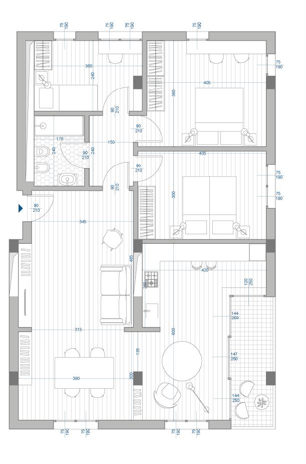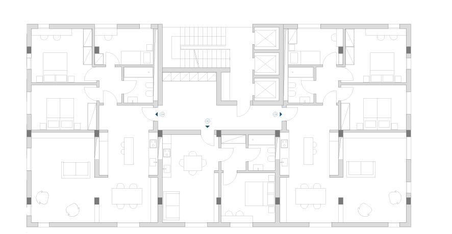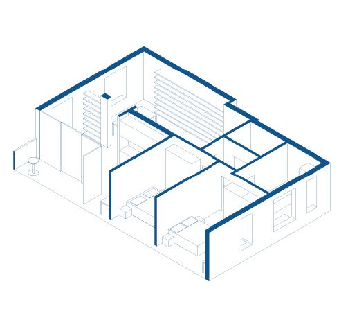 The goal is to suggest a variation of the prototype in several types applicable to standardized housing, but always able to adapt to the needs of its inhabitants. The types created are varied, ranging from minimal accommodations for singles to four-room apartments for off-site students. Each of these types, thanks to the use of dry technologies, are reversible and convertible into different accommodations. Furthermore, through this technique, it is possible to pass from a residential situation to an office configuration by dismantling and reassembling only 10 walls. This flexibility in plan is also found in the elevation. In fact, it is made using panels covered in Equitone Line, which give materiality to the facade and at the same time allow its reversibility. Three standard panels have been designed, which can always be combined in different ways, 150 cm wide.