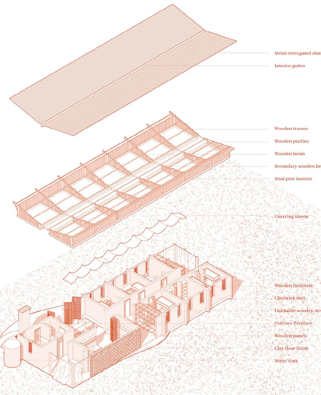 Related to the local tradition is also the constructive technique; in fact, it was decided to use local clay bricks for the walls, sand-mixed cement and compacted earth for the base, wood and corrugated sheets for the roof.