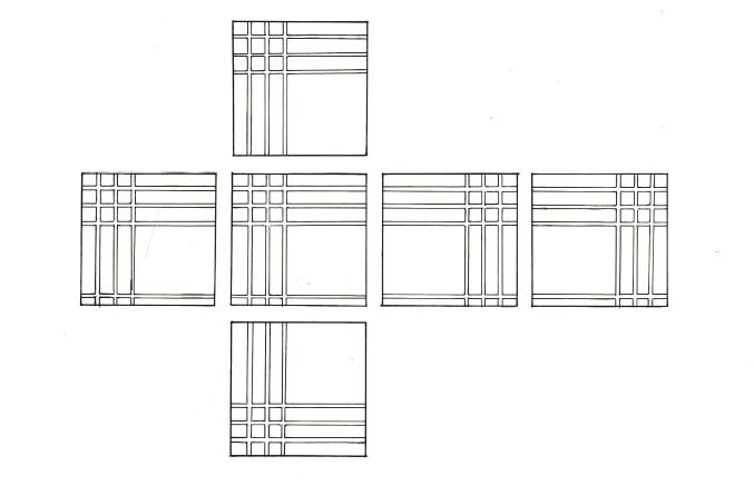 Utilizing the seven ordering principles, solid/void relationships, and spatial relationships, this project was an exploration of three-dimensional design. To explore these principles and relationships, an 8x8x8 inch cube was divided using 8x8 inch planes. After the assembly of these cubes, hand graphic skills were utilized to create an orthographic projection and four axonometric views of the finalized cube.