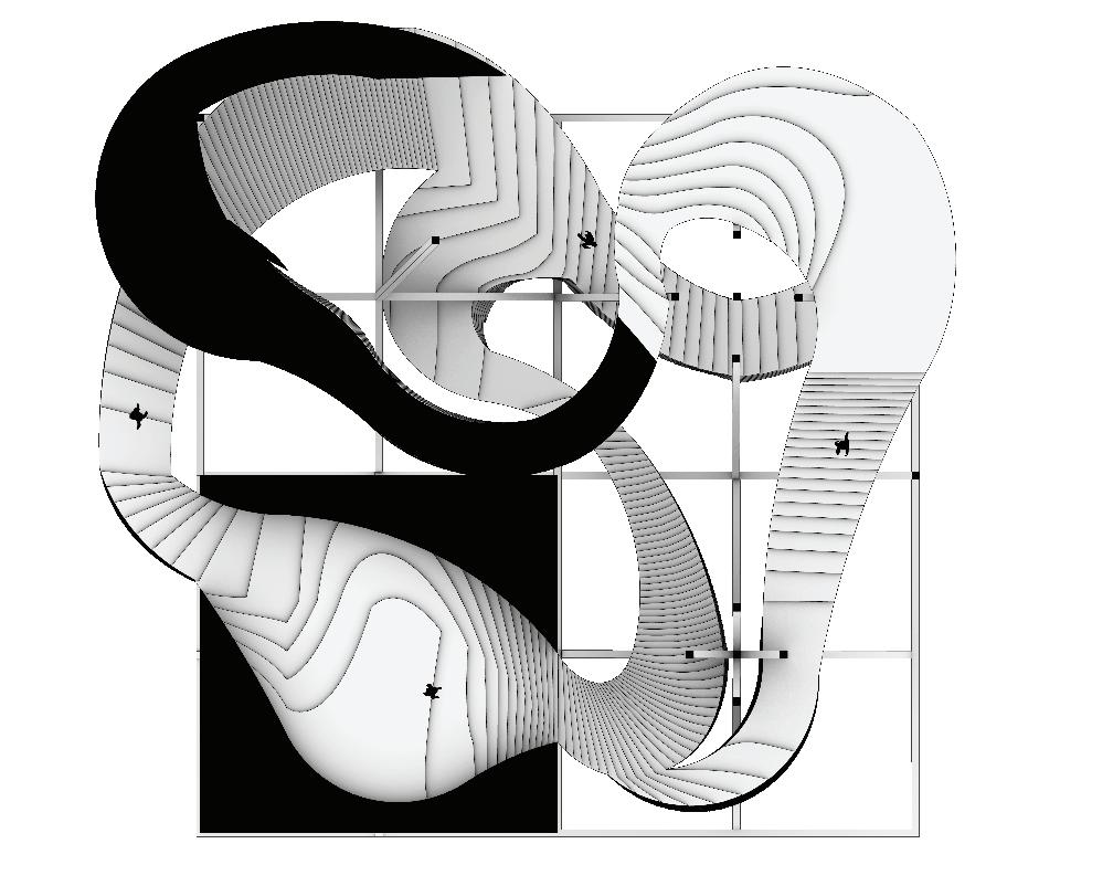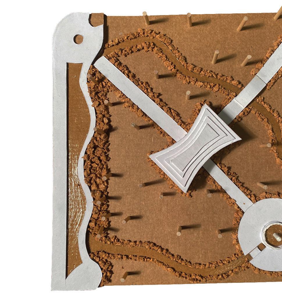 The first stage of this project involved the creation of tectonic framework that celebrated craftsmanship and the “act of joining.” To create this framework, the action word “to knot” was incorporated into the grid of framework. After manipulating the tectonic framework, a stereotomic terrain was woven throughout the structure to explore terrain through demarcated boundary conditions of the earth. The carving of the additive and subtractive spaces with the terrain was done using the word “to inscribe.”