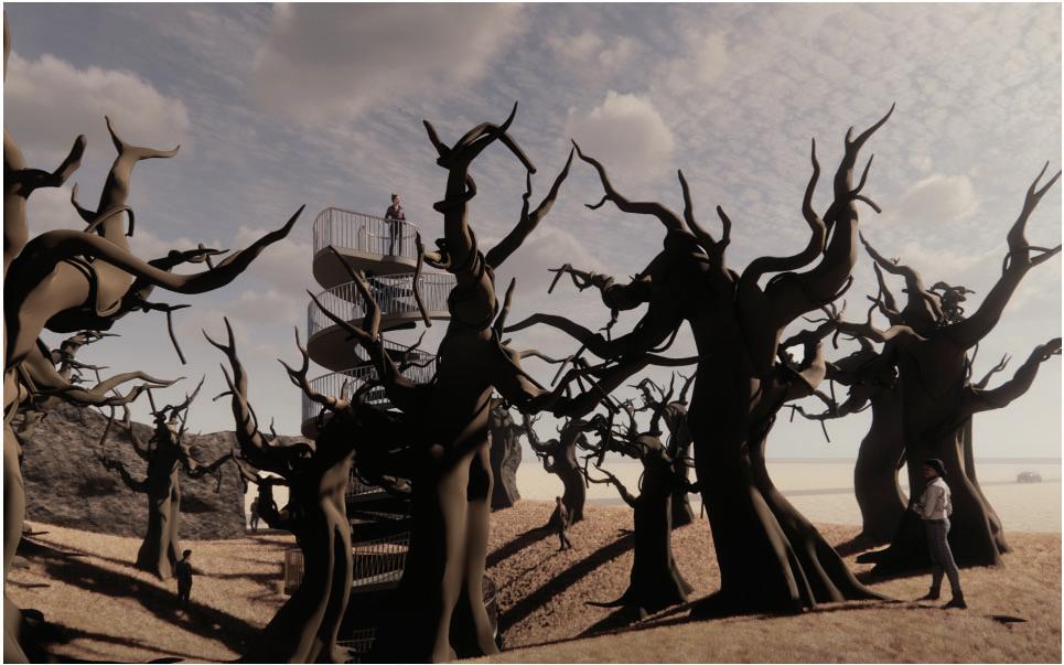 This project centered around the creation of a roadside attraction adjacent to the historic Route 66 highway in California. The theme of this attraction was Dante’s Inferno, a classic 14thcentury Italian poem. To communicate this theme, an exhibition space with multiple galleries was created. By wandering through these galleries, the visitor is taken on a pilgrimage of selfdiscovery. In this space, they have the autonomy of choosing their experience, due to the nonsequenced arrangement of the galleries.