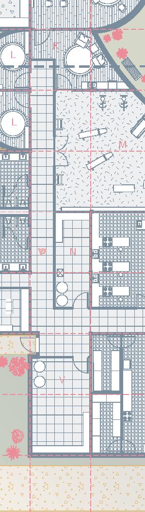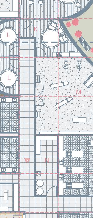 G. Group therapy H. Meditation space I. Fairgrounds storage J. Maternity classroom K. Lactation space (2) L. Administration offices M. Physical therapy N. Janitor closet