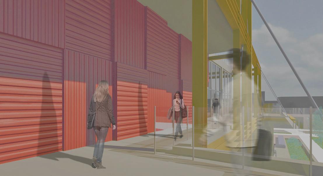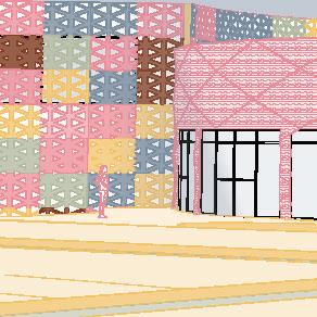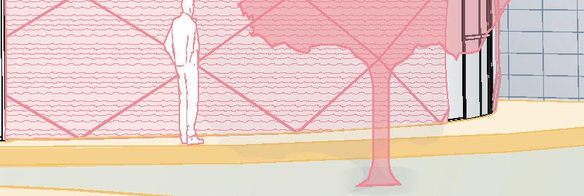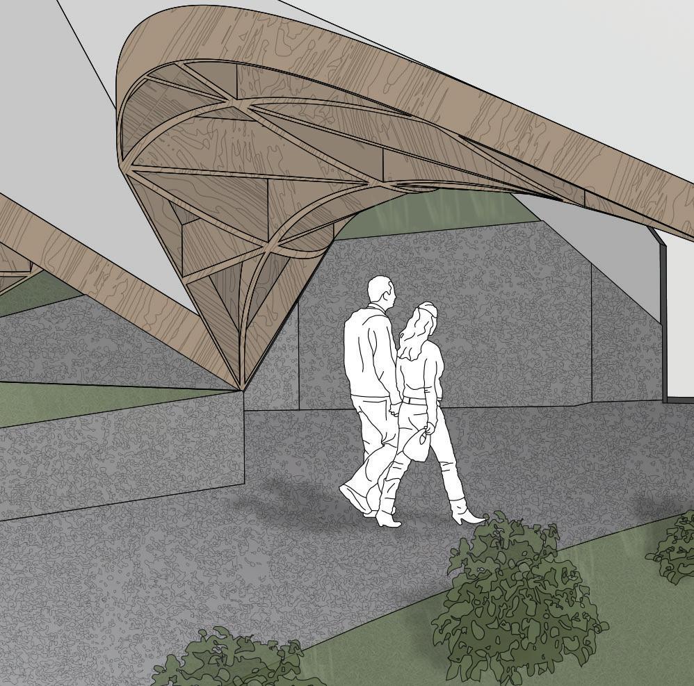 OVERSIZED ROOF PROVIDES SHADING FOR EXTERIOR PLAZA