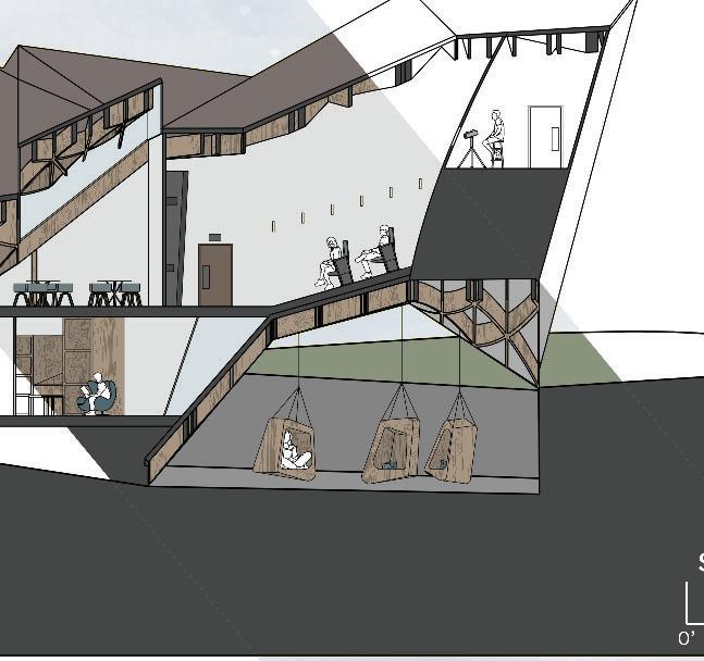 When approaching the topic of underrepresented populations within the healthcare scope of Munice Indiana, a space for children and mothers was evidently a necessity. To create a space for this group, architecture that emphasized playfulness, safety, and comfort was the focus. Forms were abstracted from surrounding site context to create a sense of familiarity. This environment features classrooms for two different age ranges, a unconventional playground that encourages imagination, a lactation space and physical therapy room for the mothers. The site utilizes permeable pavements parking, and features a drive-through food pantry, to provide many comforts and resources to the families that will be occupying the space.