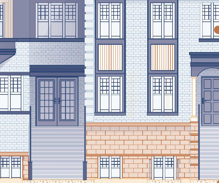 The design for this residential rowhouse began by viewing precedent projects in the Historic Northside Neighborhood of Indianapolis. Through these precedents, two distinctive styles were identified and documented, historic and contemporary. These two distinct styles informed the guidelines that were created for this project. These guidelines informed design decisions and established a set of criteria to follow. These criteria allowed for each design iteration to be placed within any of the three zones on the lot without discordance.