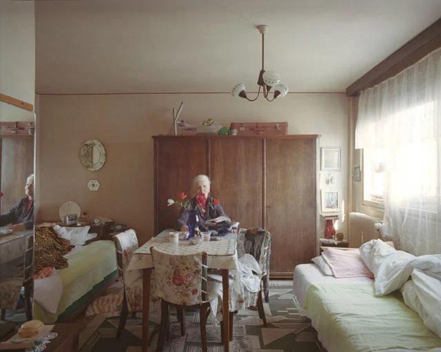 The person towards whom she looks is myself, but forty years younger, cautiously asking to further extend my coat of concrete to perhaps cover the knitting needles my friend is sterilizing on the gas fire. The peculiar smell of hot metal creeps out from underneath the closed kitchen door. A kitchen! I almost forgot where we were. The walls seem to close in on each other in this feminine tension, where tables are not only for buttering fresh bread and defrosted meals brought on the train from the countryside. My friend told me that her first memory at home is watching her mother peeling potatoes.