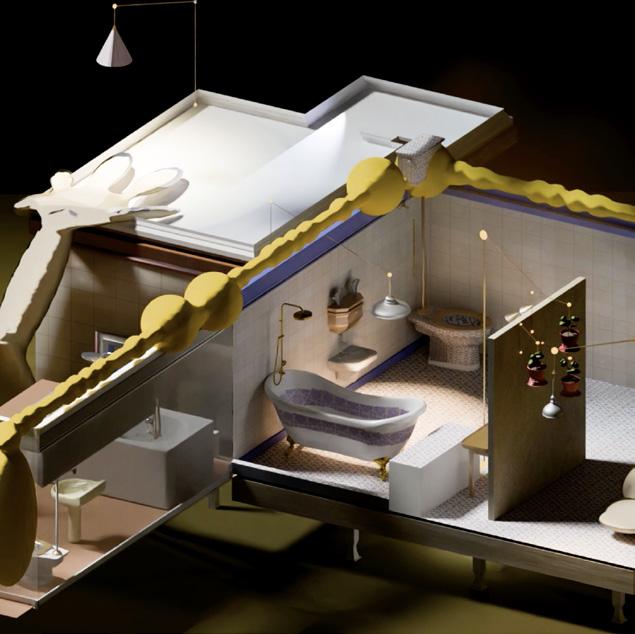 figure 0.1. The three domestic spaces: A kitchen, a bedroom and a bathroom. Design work.