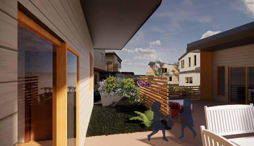 Winter/Spring 2020 | Studio Critic: Peter Keyes share a courtyard in the middle. This idea strengthens the goal of community living of a shared backyard space but can also have semitransparent dividers to provide privacy.