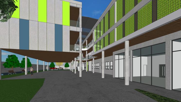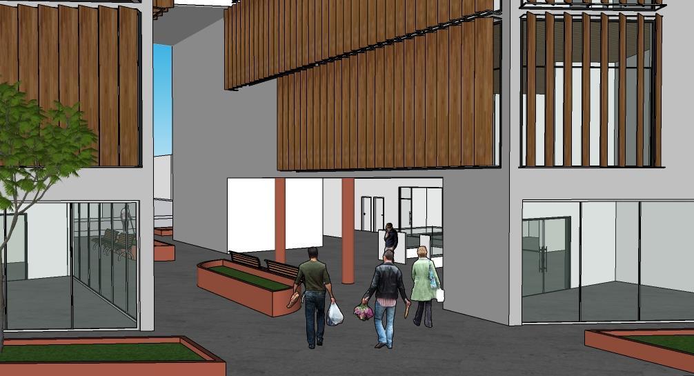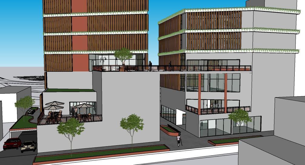 Criação de uma escola técnica composta por 4 blocos com passarelas elevadas, visando promover interligação entre eles