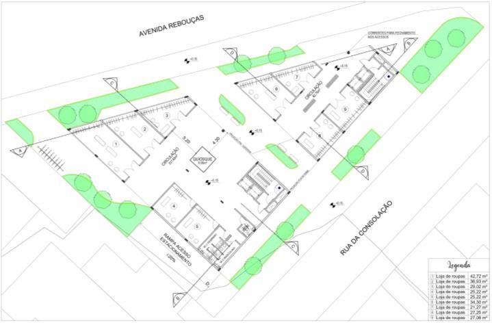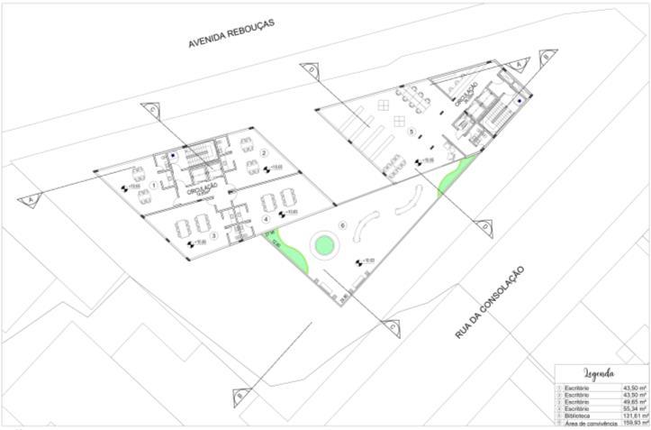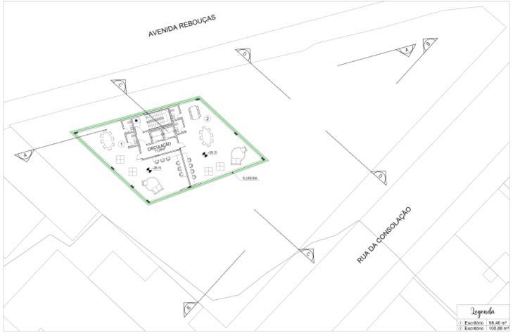 O local de inserção é um terreno de esquina com a Av Rebouças, Rua da Consolação e Alameda Jaú, localizadas no bairro Jardim Paulista, na cidade de São Paulo