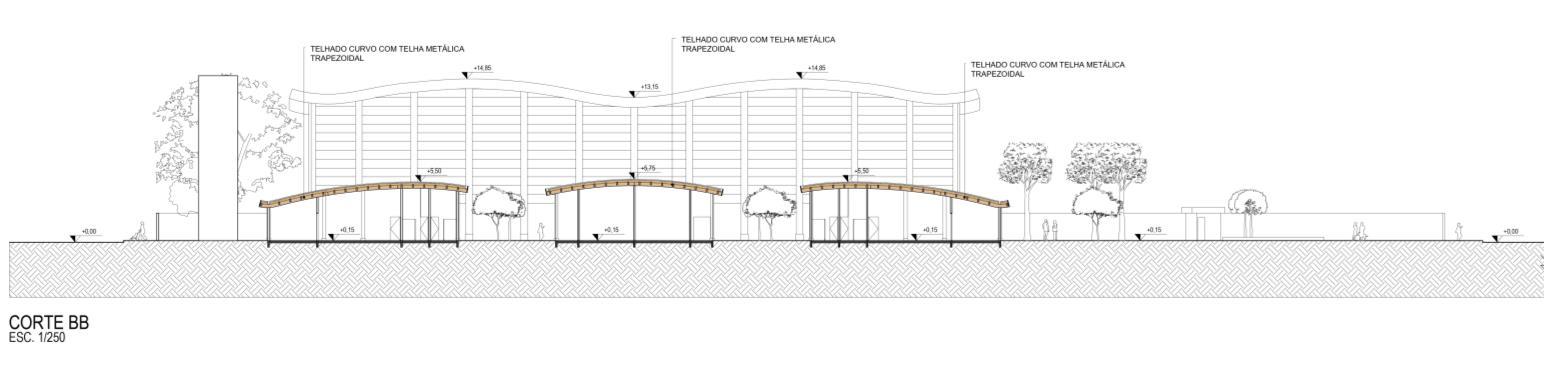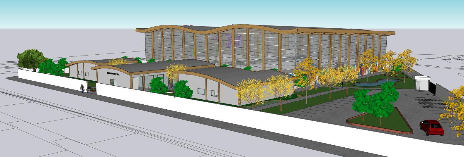 Com o objetivo de implementar uma volumetria cheia de movimento, beleza e conforto para a região em que será inserida, a implantação define um formato que através da utilização de uma cobertura ondulada, possibilita uma fluidez visual e torna-se uma construção diferente do existente