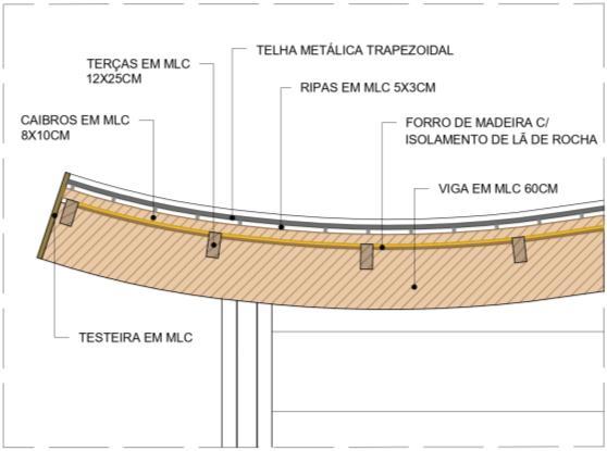O sistema estrutural adotado para todo o complexo foi o de MLC (Madeira laminada colada), trazendo maior leveza e autenticidade para o projeto