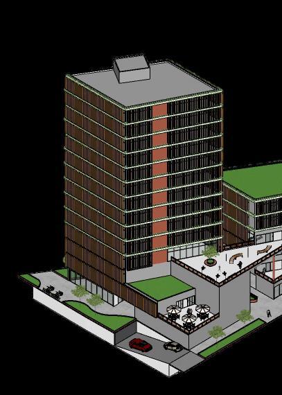 O projeto Edifício multifuncional Office & Co é composto por 2 (duas) torres ligadas entre si por uma plataforma elevada O programa contempla atividades como escritórios, lojas, restaurantes, biblioteca e terraços O perfil do edifício permite uma transição suave entre uma avenida existente e uma rua menos movimentada