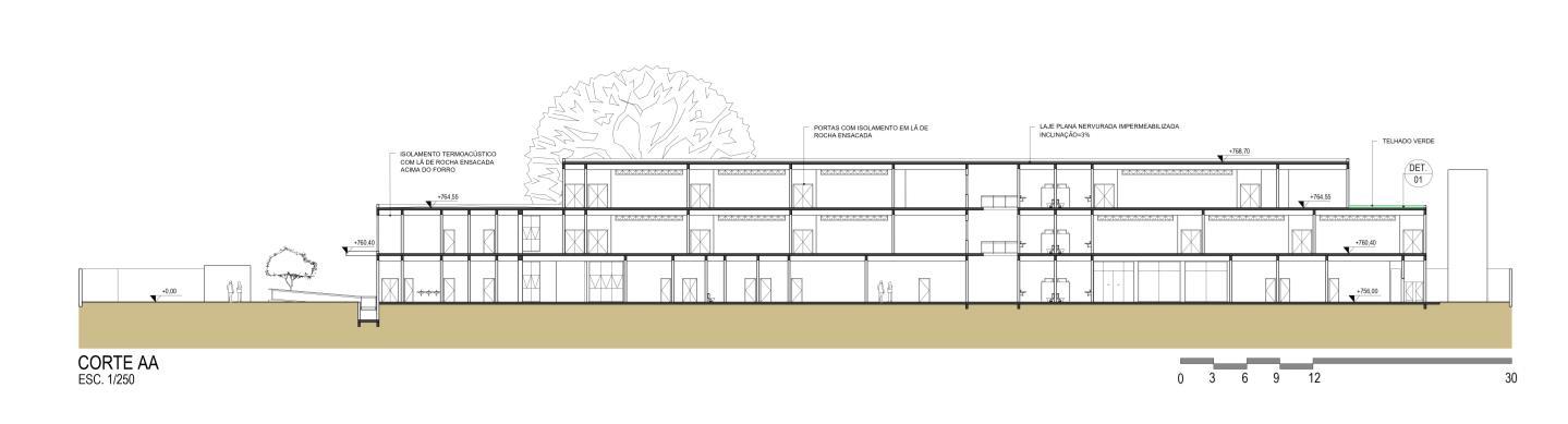 O projeto foi desenvolvido de forma que priorize aspectos urbanos e climáticos, gerando ambientes bem setorizados, com ventilação adequada e iluminação natural.