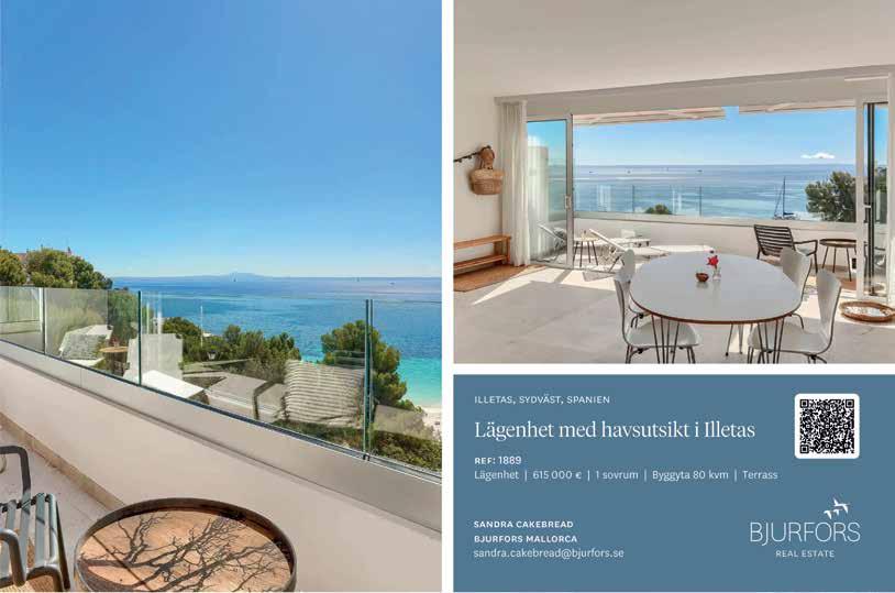 I DET HÄR NUMRET kan du bland annat läsa om entreprenörsparet som under pandemin bestämde sig för att ytta till ön och starta om på nytt. Under sina tre år här har de hunnit bo i era olika kvarter i Palma, renovera och sälja ett magni kt town house samt förvandla ett café till en riktig pärla. Läs mer på sidan 24. En annan entreprenör, och före detta hästpolospelare, debuterade som romanförfattare e er att han bosatte sig permanent på ön. E er ett långt kring ackande arbetsliv har ytten till ön gett honom en ny sorts frihet och avkoppling, läs mer på sidan 42. Och när vi pratar om avkoppling, på sidan 48 tar vi er med till några av öns grönskande oaser där lugnet, do erna och friden omfamnar en. Det nns inget bättre sätt att ladda batterierna på!