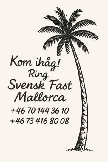 SKÄMT ÅSIDO, men många tidningar har svårt att hänga med i svängarna och ser sina läsarsi ror falla, men inte vi på Ön, Livet på Mallorca. Tvärtom ser vi att antalet läsare, prenumeranter och annonsörer ökar, det visar att vi lyckas fylla våra sidor med information och inspiration som gör livet på vår älskade ö både enklare och mer njutbart. Men vi vill alltid bli bättre och välkomnar därför era synpunkter och förslag på artiklar eller intressanta Mallorcapro ler!