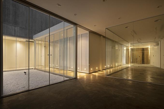 O interior do edifício traz elementos da arquitetura japonesa, como o brutalismo, minimalismo, uso da madeira nos ambientes de contemplação e o tradicional jardim japonês.