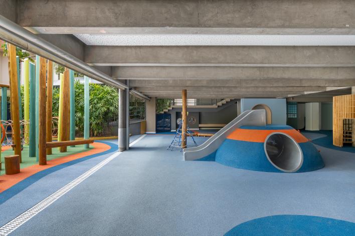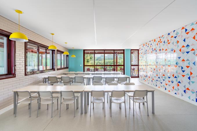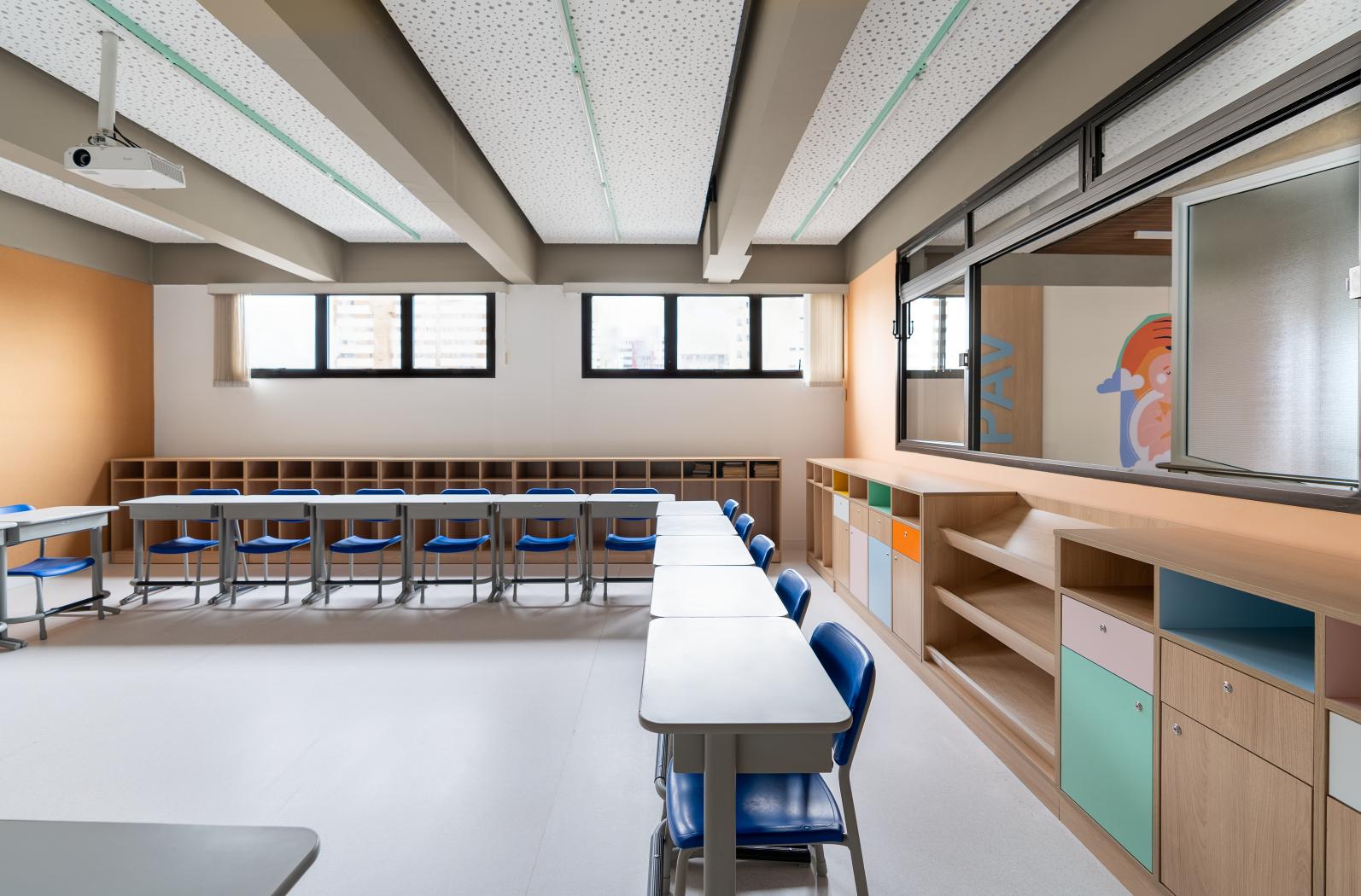 O edifício original recebeu, portanto, o programa relacionado ao ensino infantil e, o programa do ensino fundamental e médio foi alocado em um novo edificio, no mesmo lote, que será construído em etapa posterior.