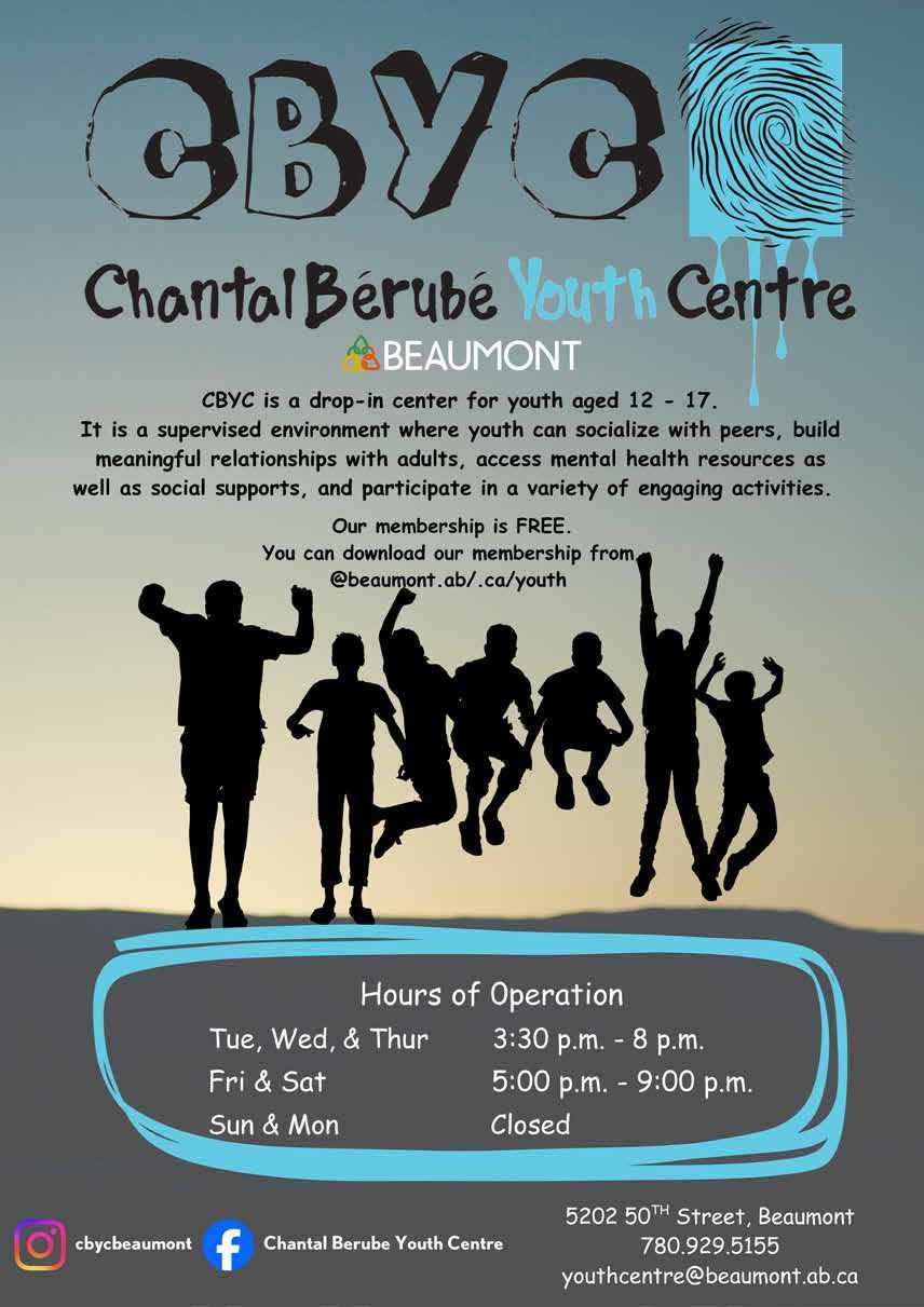 Drop-in Centre for youth aged 12-17. Variety of recreational, educational and preventative programming. www.beaumont.ab.ca