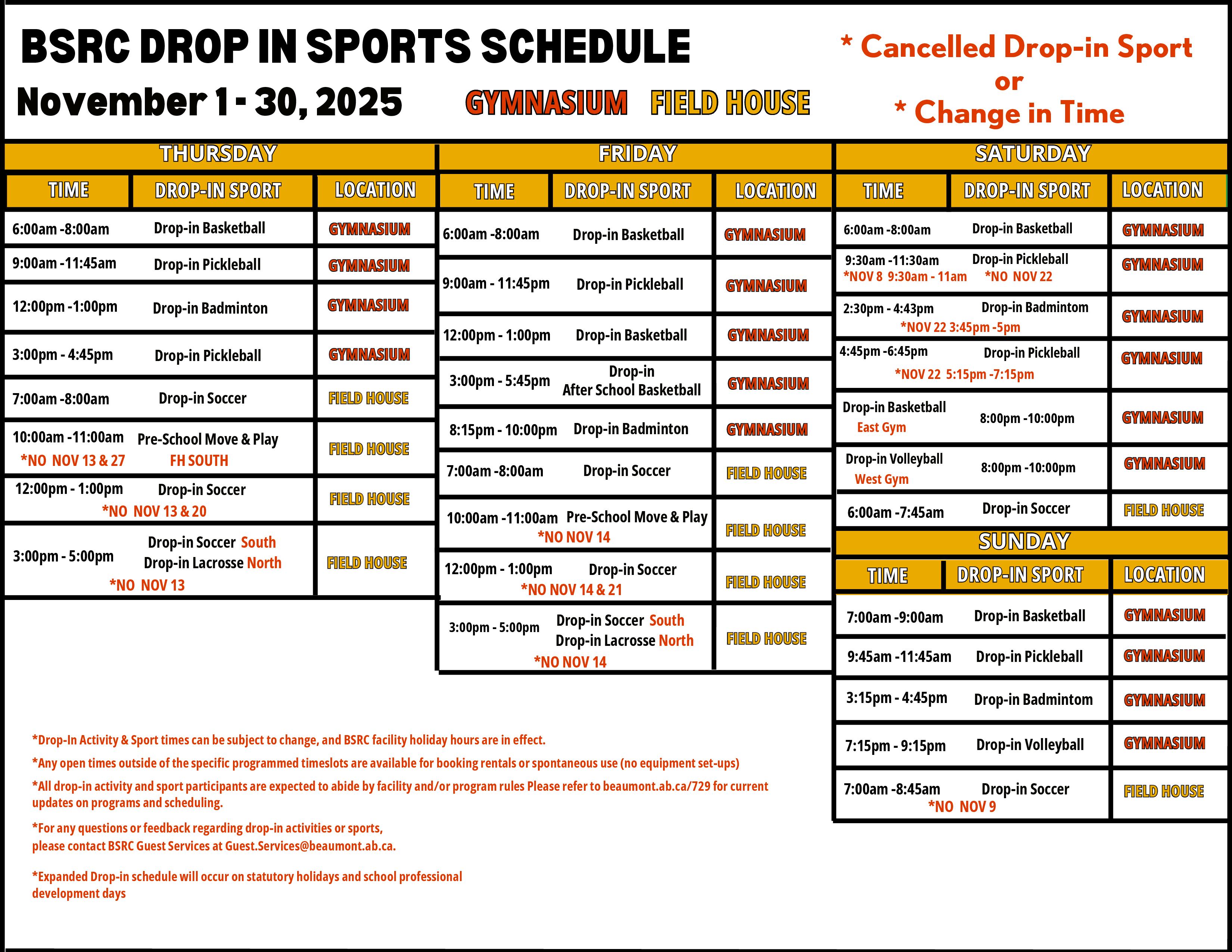 November Drop-in Sports Schedule by Beaumont-Alberta - Issuu