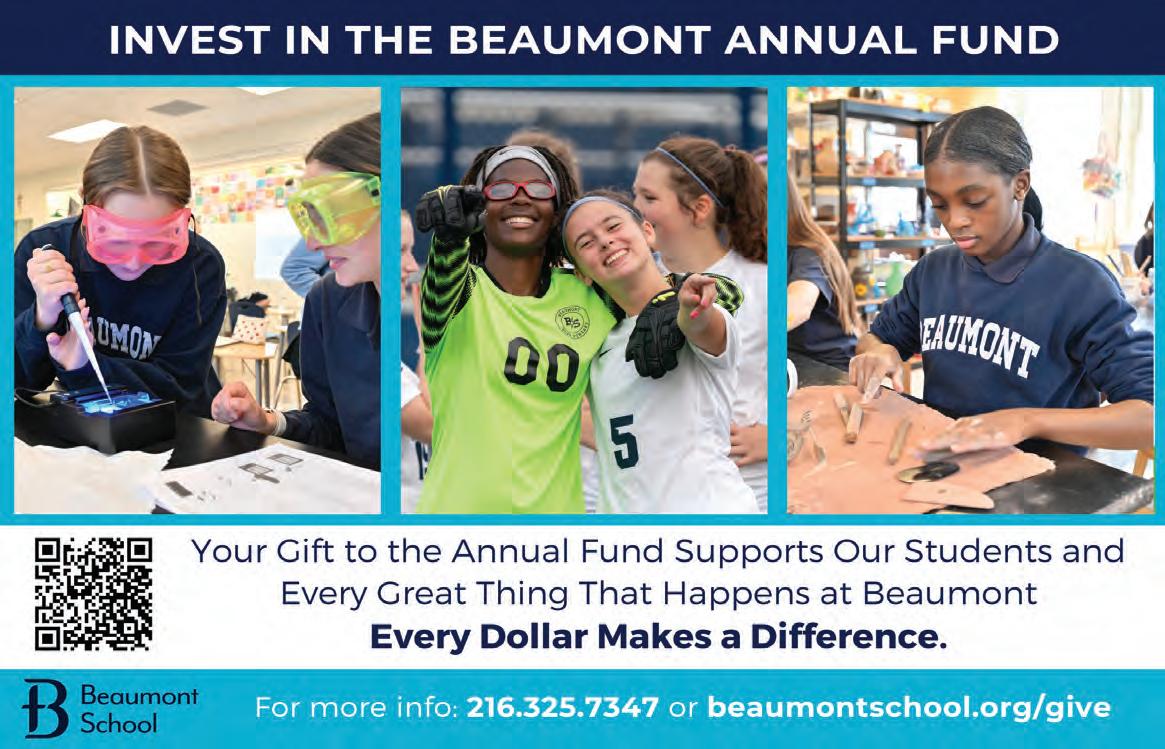This issue also includes our Donor Impact Report, focused on the essential support our endowment and annual scholarships provide Beaumont students. The stories behind these endowments are beautiful, quintessential Beaumont stories. Gifts that were established as a memorial to a beloved mother, sister, friend, teacher. Or, most recently, they support the daughter of a first responder made possible by an alumna whose own Cleveland Police Officer father sacrificed for her to have a Beaumont education.