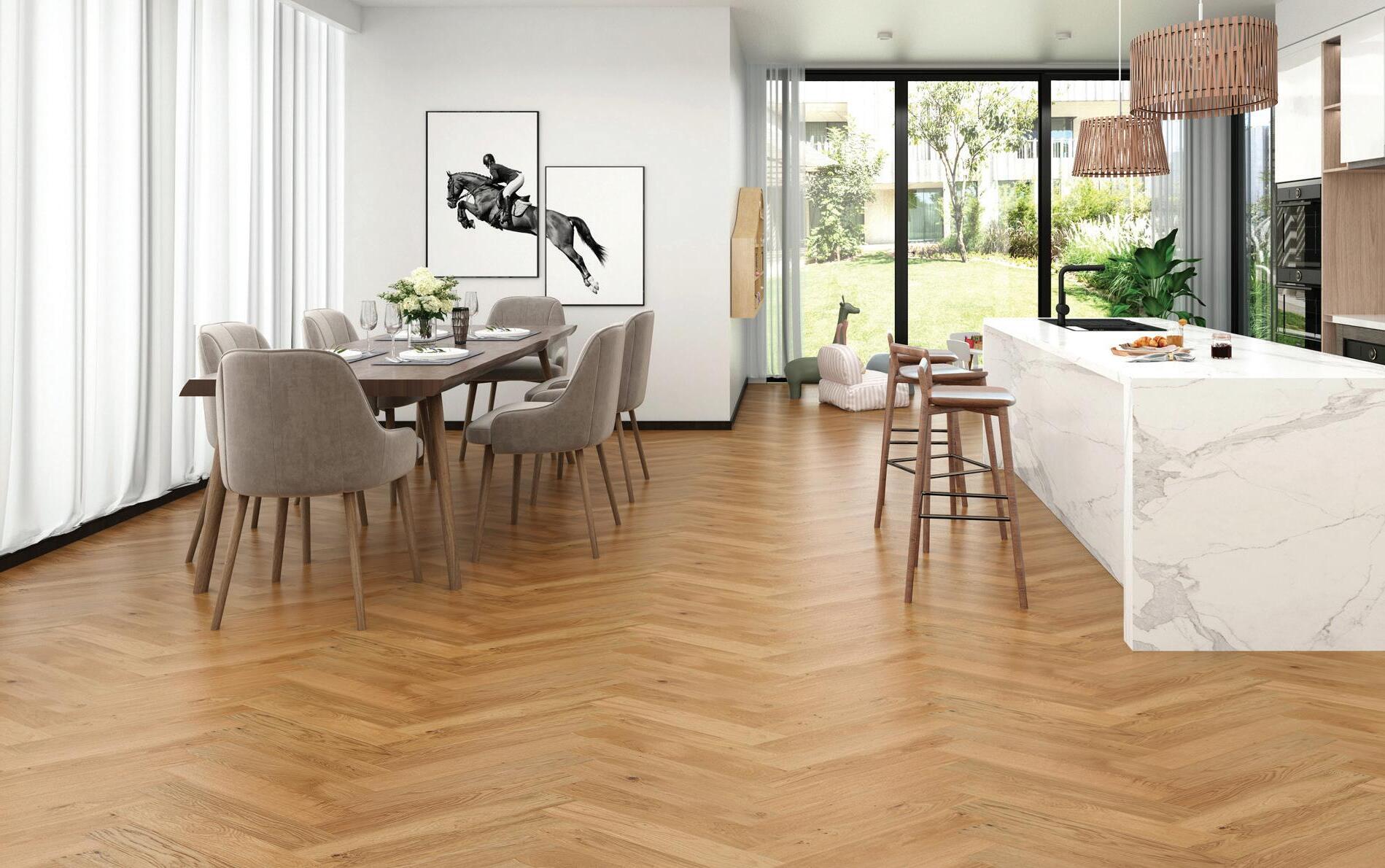Enchant Herringbone engineered timber flooring is sure to elevate your space with a touch of magic