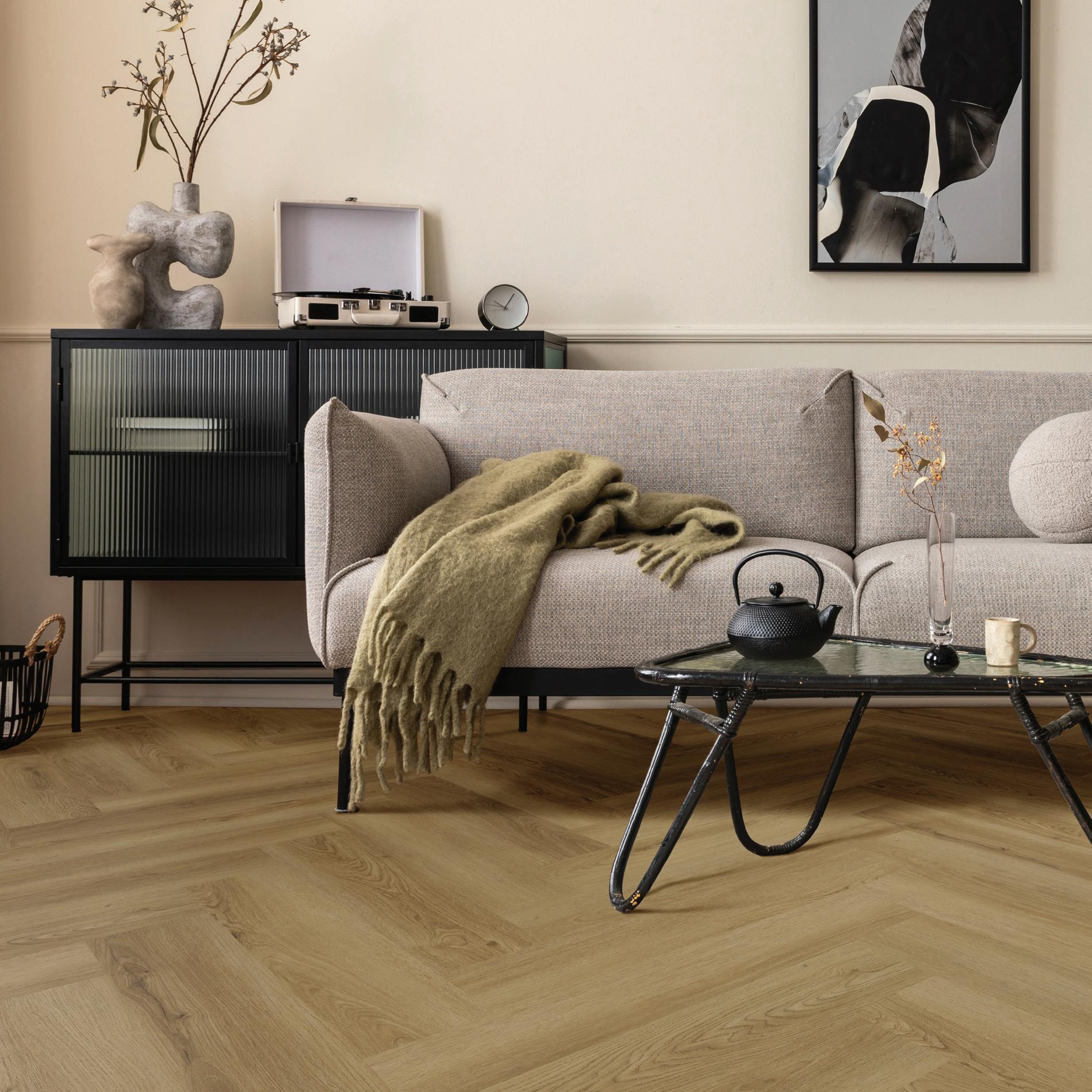 Elevate your next project with the warming timber tones and regal timeless elegance of a Herringbone pattern, with our Charm hybrid flooring range