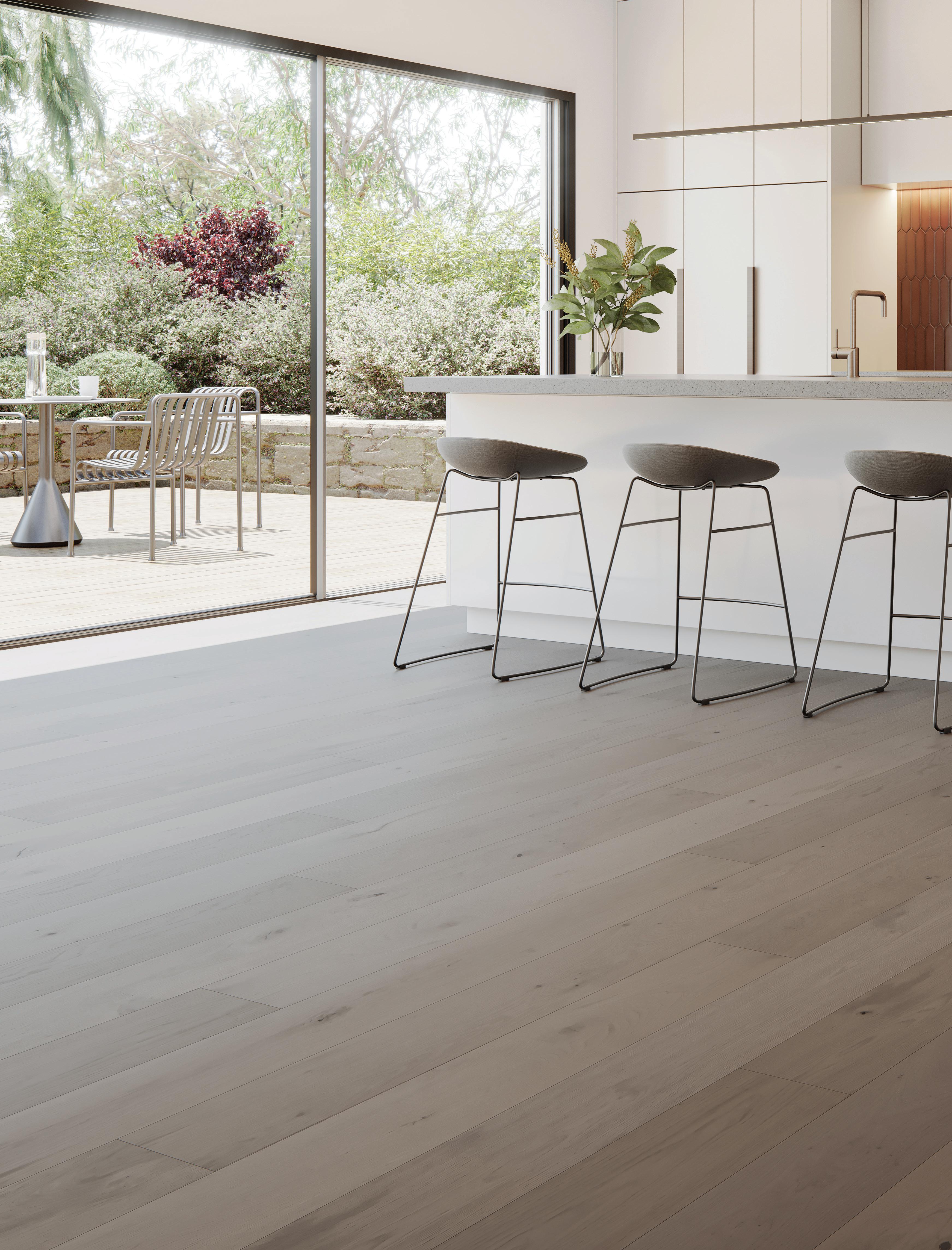 A real hardwood timber veneer, that uses up to 90% less timber than traditional solid hardwood floors, reducing the impact on the environment.