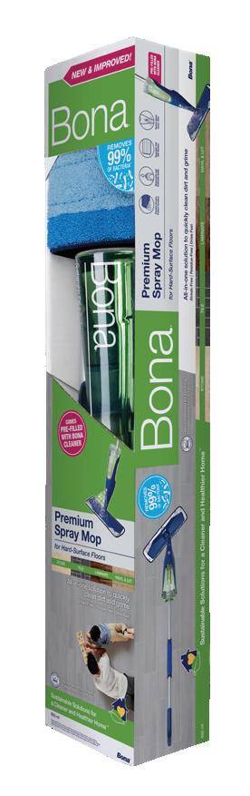 ◊ Kits include a sturdy trigger handle swivel mop head a microfibre cleaning pad and an 850ml refillable cartridge of Bona’s award-winning cleaner.
