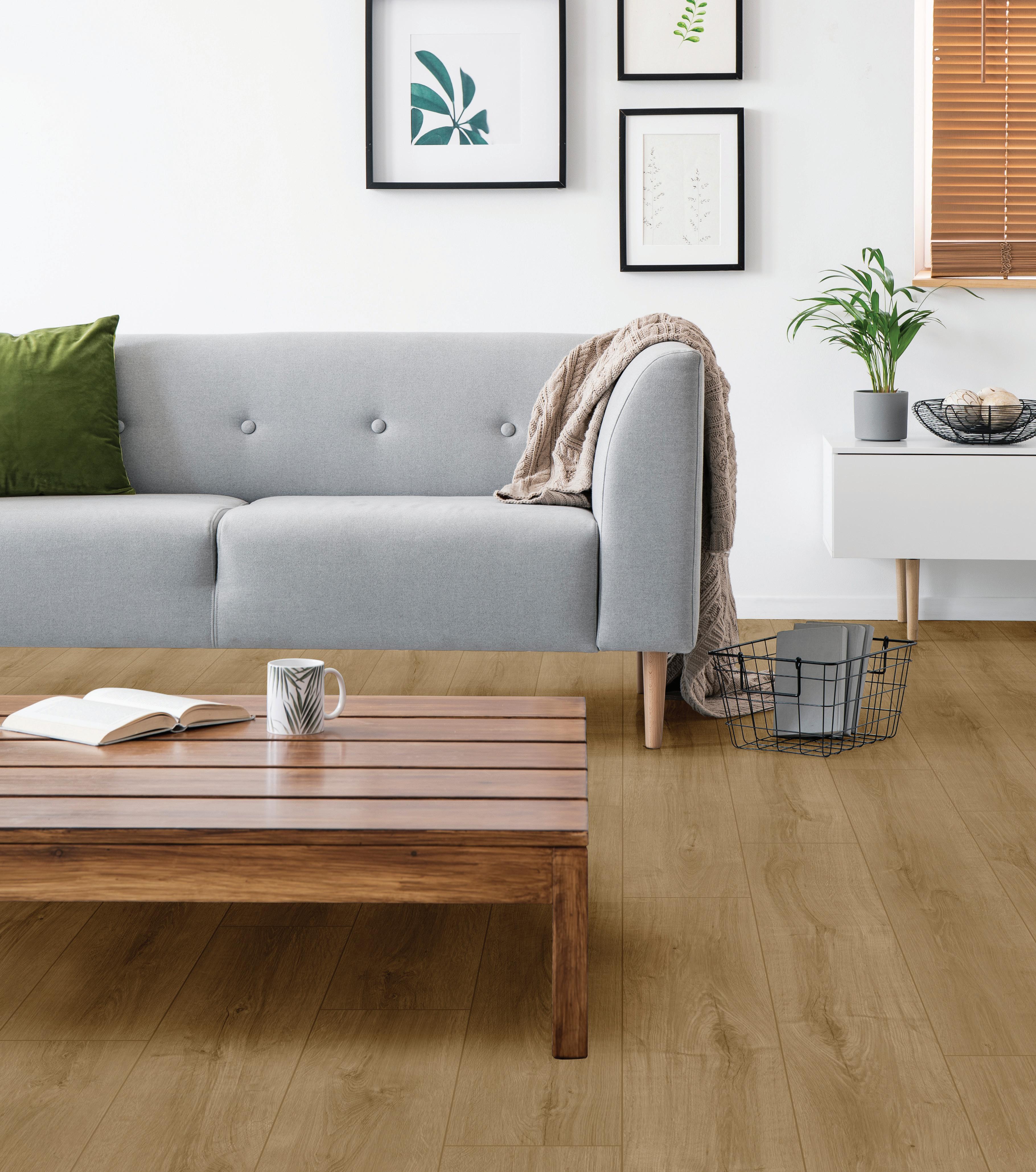 Laminate flooring with a realistic timber look and textural feel bringing warmth to interiors, with a click-lock joining system this laminate is easy to use and install