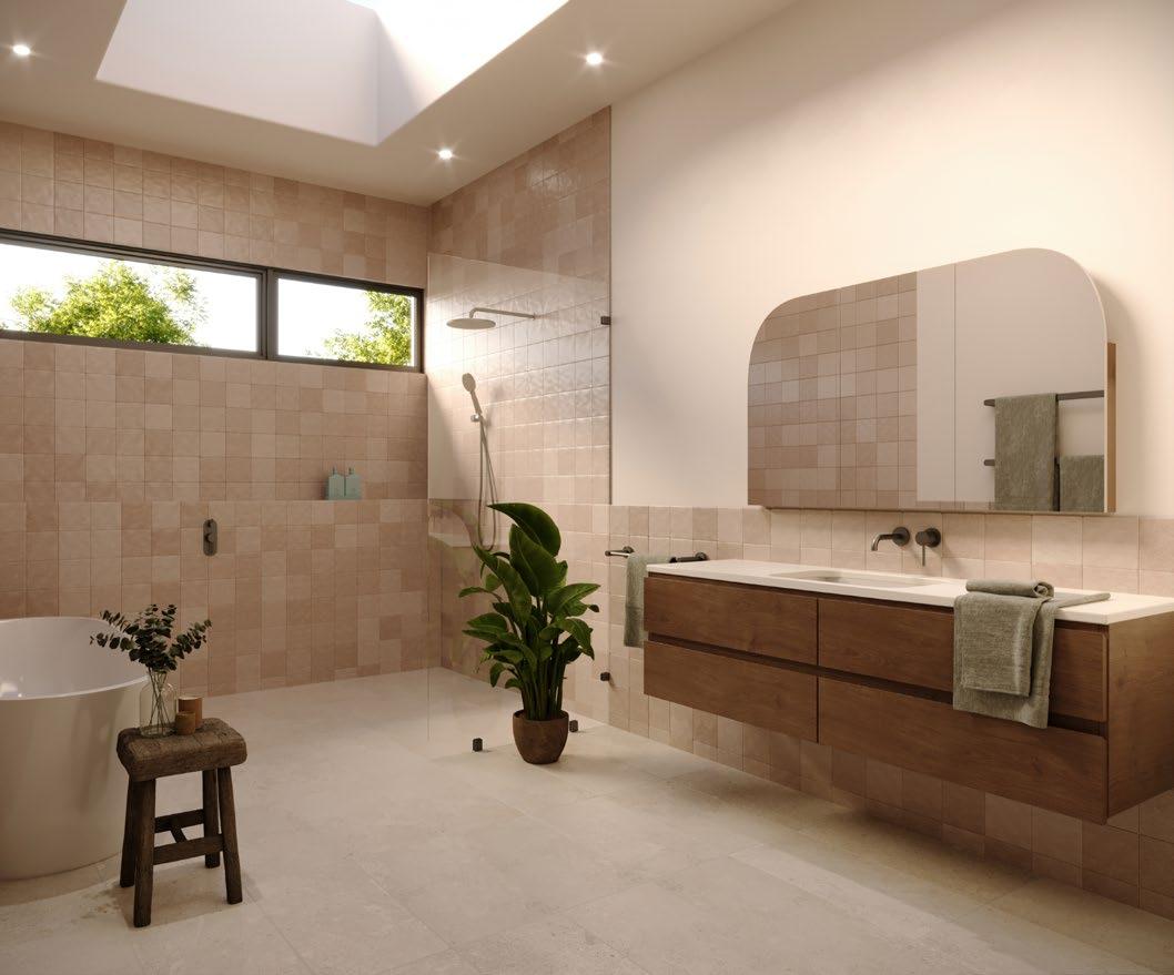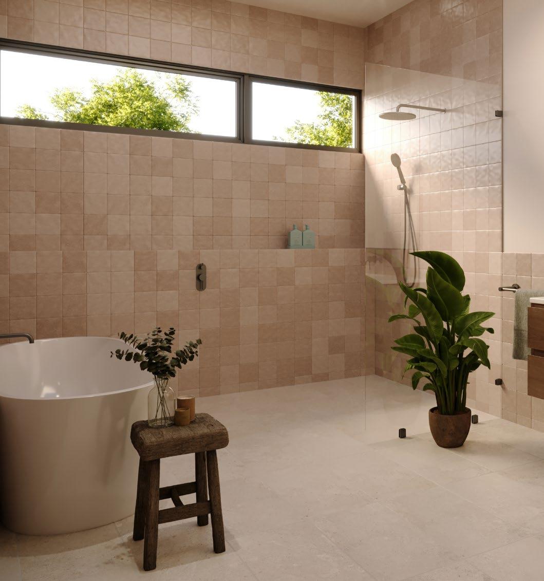 SPA - HEPBURN 1267703 Sensi Fossil White Matt Tile - 597x1197mm Wall 1282371 Raku Sand Structured Matt - 100x100mm Wall 1282359 Raku Line Sand Structured HiLite Matt - 100x100mm Wall 1276028 Gandia Terracotta Crema Structured Textured Tile - 50x150mm Floor