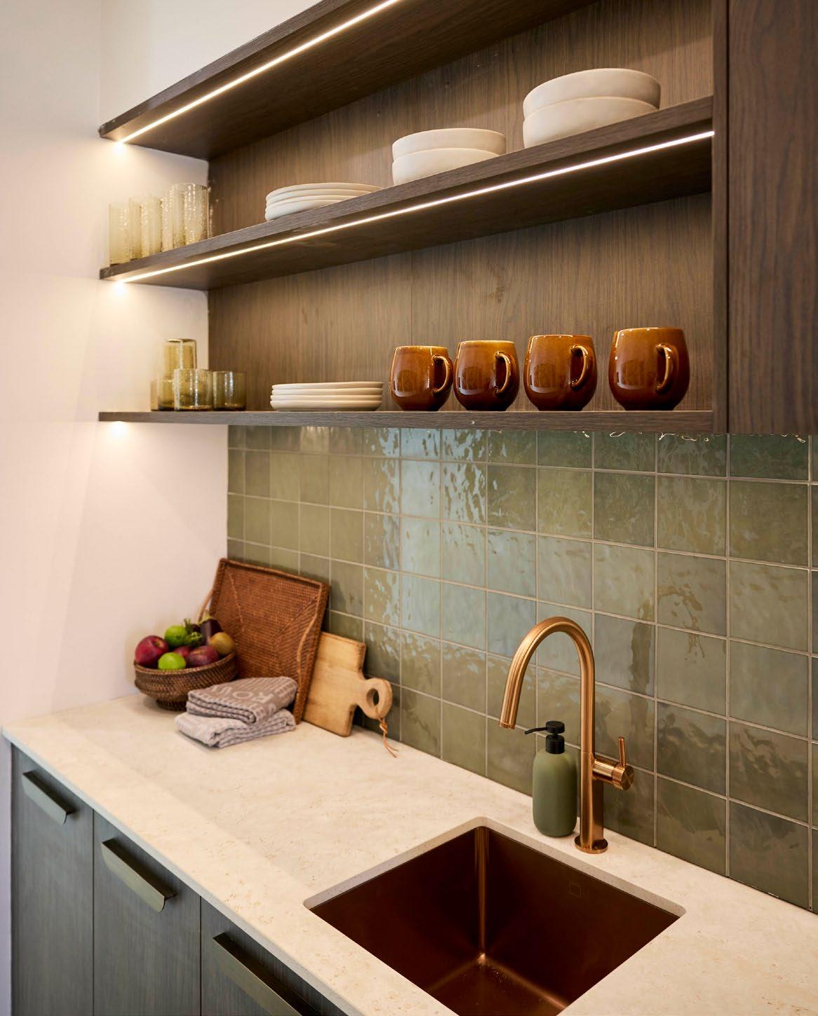 Fortress Travertine Milk Silk Tile - 600x600mm Floor and Walls 1222052 Fire Fingers Sage Gloss Mosaic Tile - (13x96) 292x 296mm Feature Wall 26613 Hotwire Underfloor Heating Half Floor 86690 Ardex FG8 Misty Grey