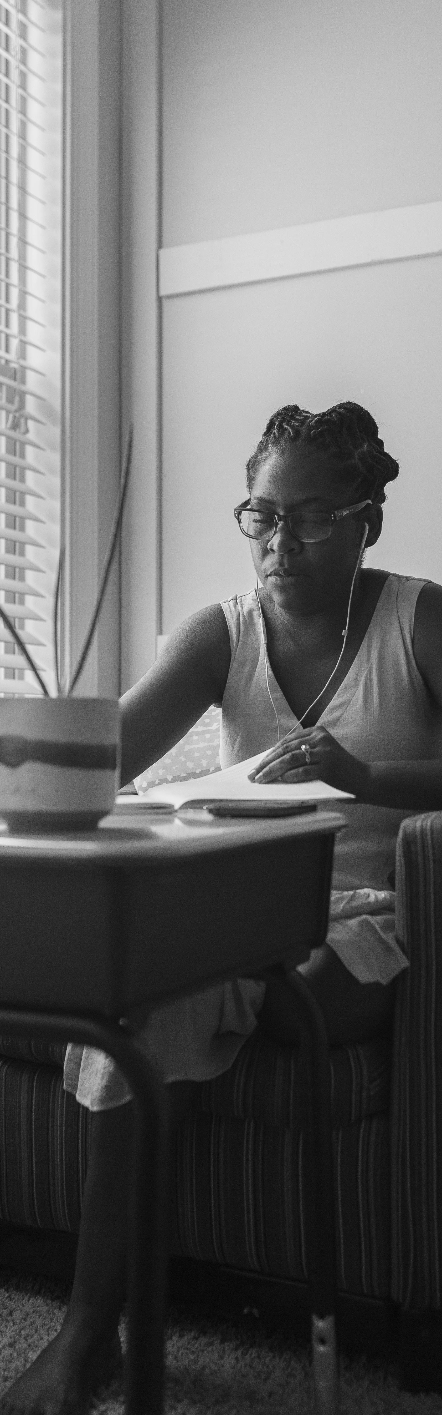 This issu is also full of beautiful reflections and commentary illustrating how people define and practice solitude. Our cover image features writer Gerty Mitchell sitting in her favorite writing nook to spend time with herself and her words. Her poem, “Solitude” captures the sentiment of her portrait beautifully, which was photographed by Damola. Aeran Baskin also shares a poem in three