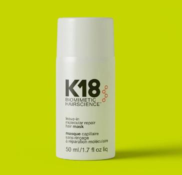 K 18 Leave In Molecular Repair Hair Mask repairs prior stress to mature hair, such as damage from colour or heat, whilst protecting it from future environmental harm and conditioning the hair without weighing down.